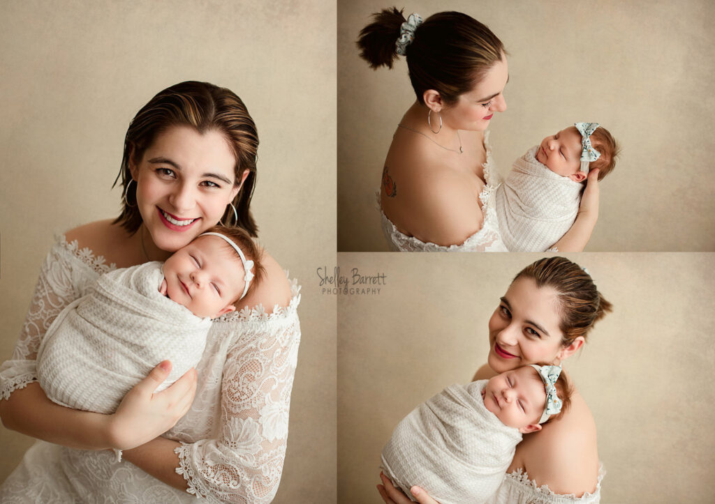 I am obsessed with this gorgeous Mom and Baby set up. Baby girl smiled in almost every image when snuggled with mommy. We also incorporated some special matching bows and hairties in a couple poses at my Navarre newborn photography studio. So special!